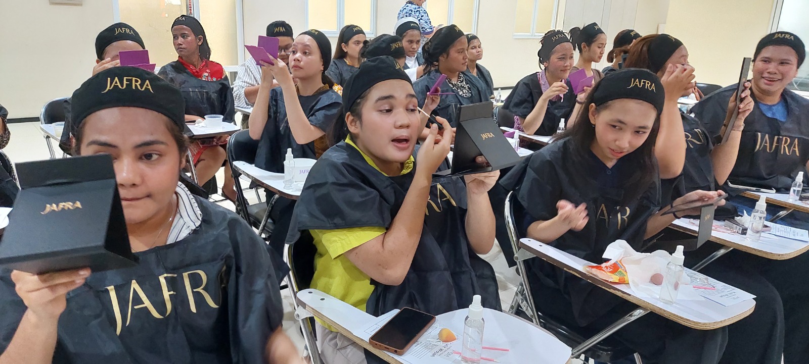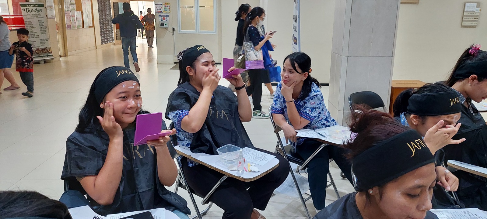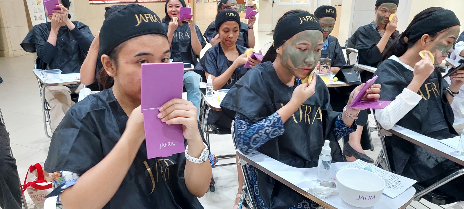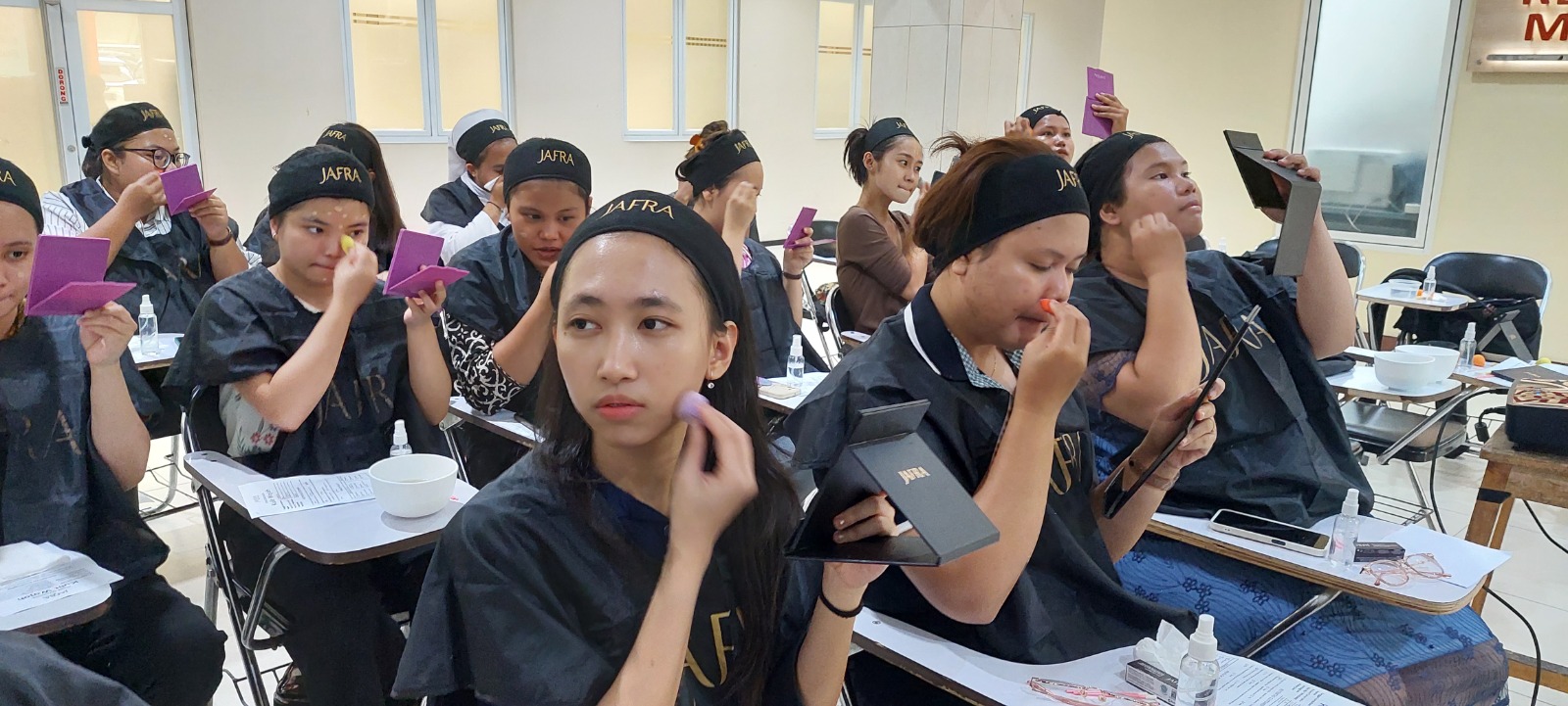 Telah diadakan kegiatan Beauty Class yang disponsori JAFRA sangat disambut antusia oleh mahasiwa putri di Hall gedung asrama. Kegiatan ini yang diselenggarakan untuk membantu dan menambah pengetahuan para mahasiswa putri untuk bagaimana cara menjaga penampilan tetap menarik. Edukasi dimulai dari cara merawat wajah dan membersihkannya dengan produk-produk dari JAFRA lalu kemudian bagaimana cara untuk make up yang bisa digunakan sehari-hari untuk mahasiswa yang lebih natural.