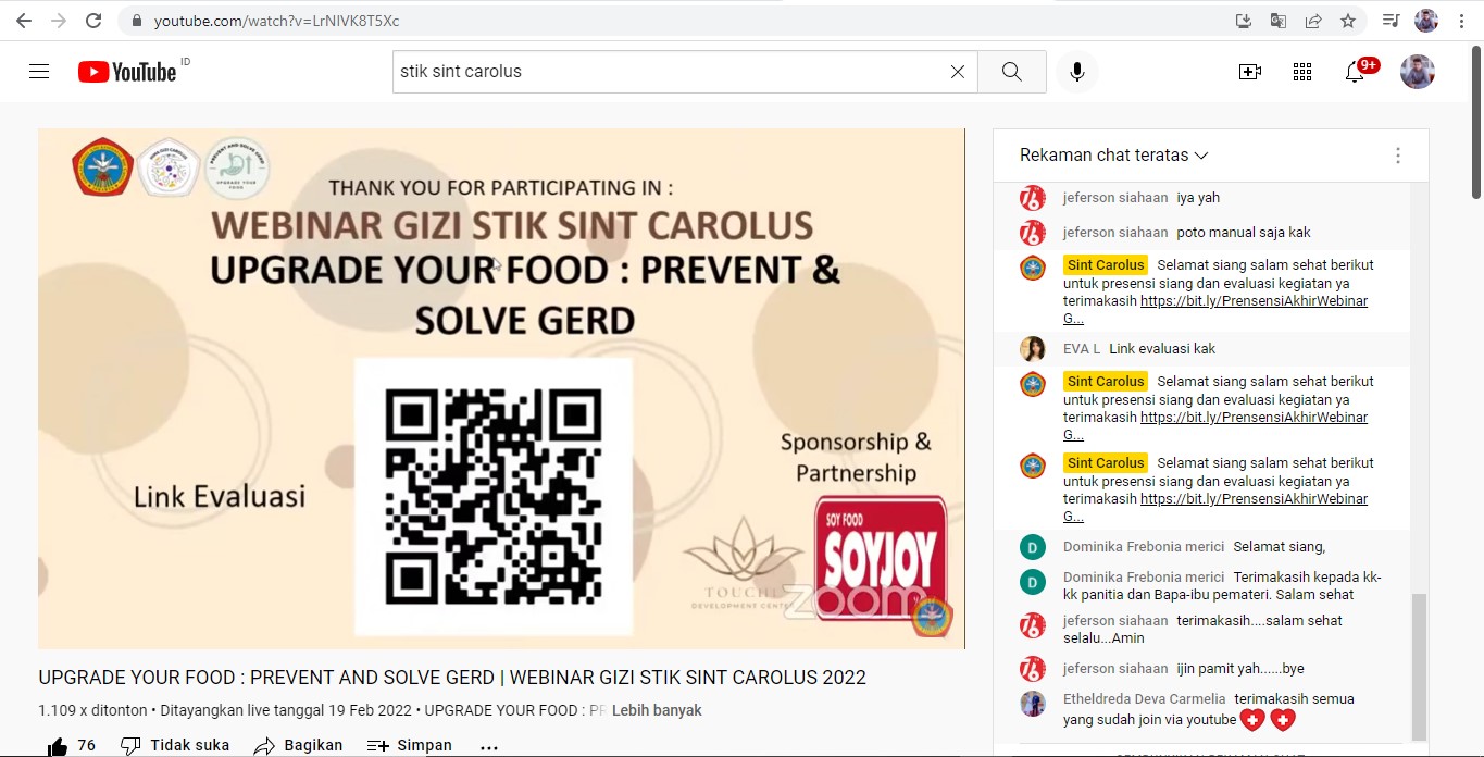 Mahasiswa Semester 7 Program Studi S1 Gizi STIK Sint Carolus menyelenggarakan acara webinar berjudul “Upgrade Your Food : Prevent and Solve GERD”. Acara Webinar ini telah diselenggarakan pada hari Sabtu, 19 Februari 2022.